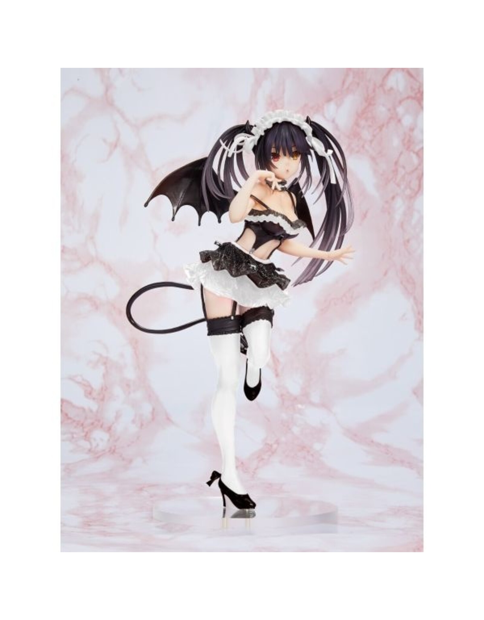 Standing tall at nearly 8 inches, this Date A Live IV Coreful figure features Kurumi Tokisaki (Little Devil Ver.). She is dressed in a black and white outfit and stands on one foot affixed to a display base.